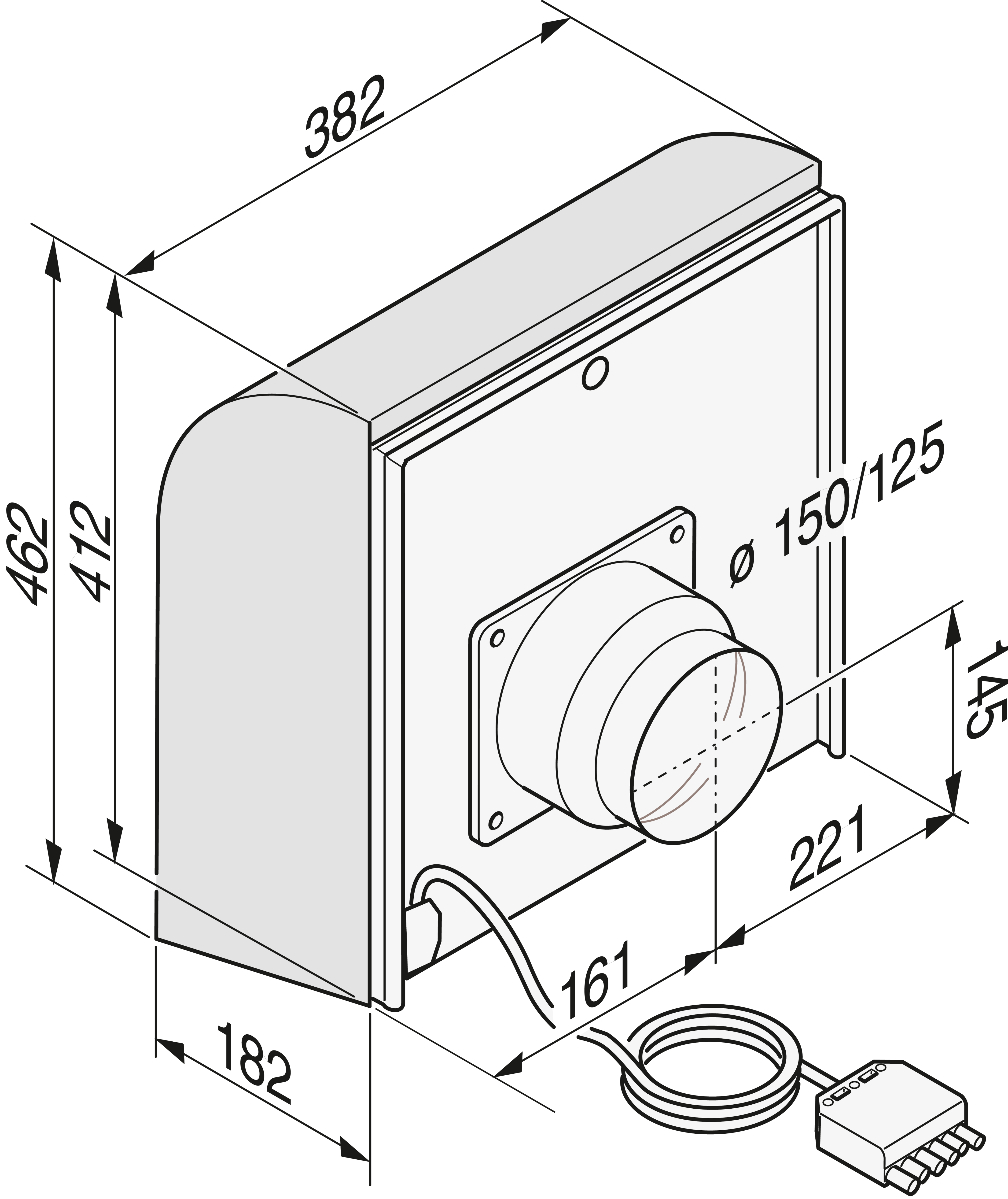 Подключение вытяжного воздуха диаметром 125/150 мм.