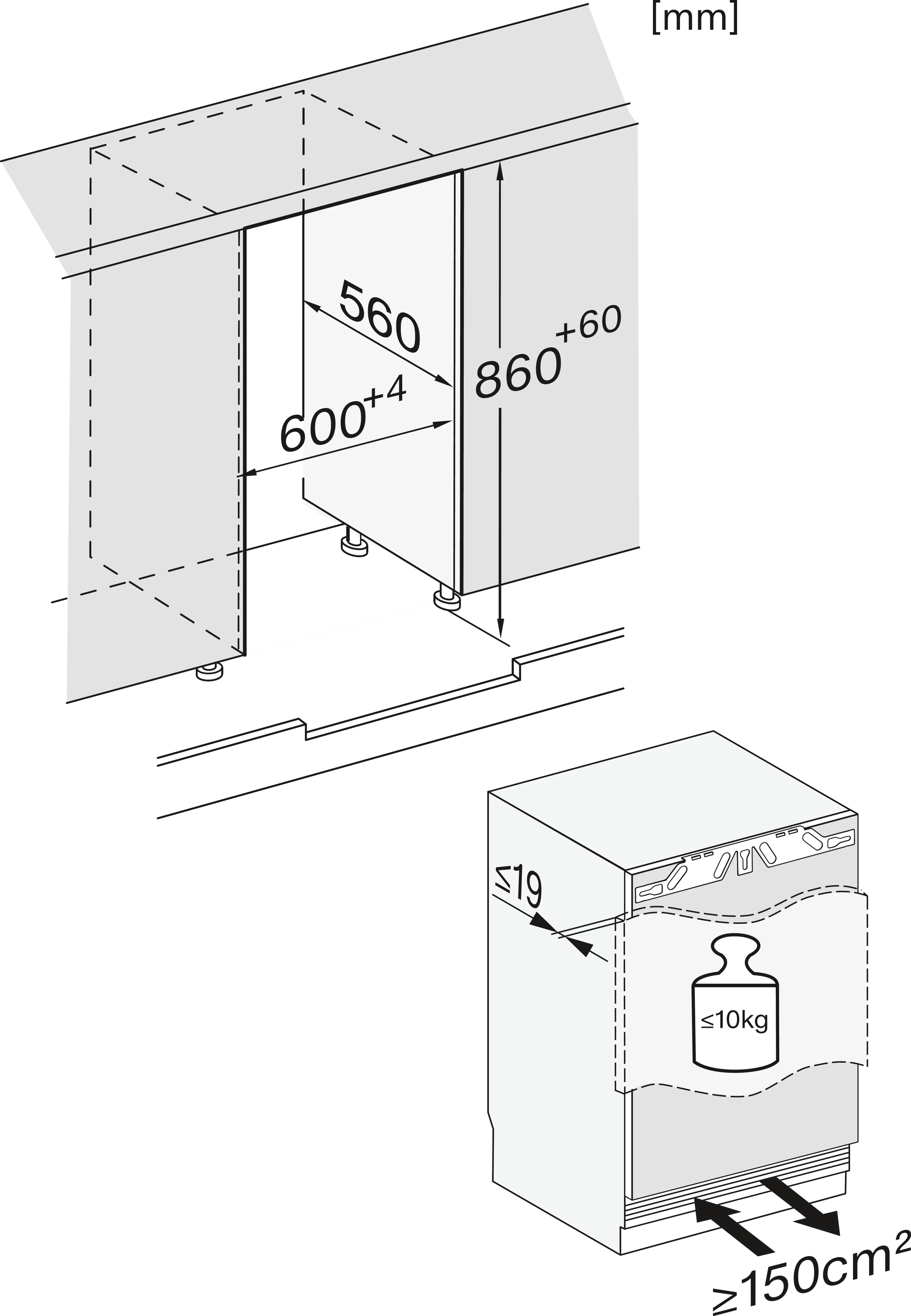 Установка встраиваемого холодильника